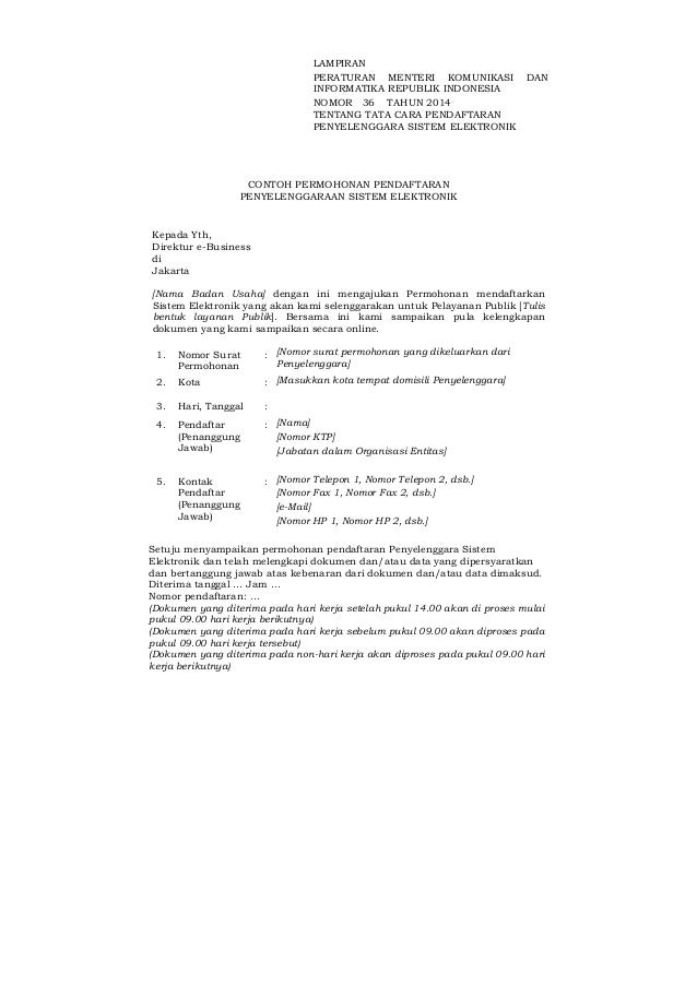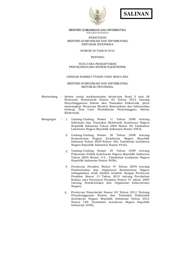 Permen Kominfo Tata Cara Pendaftaran Penyelenggara Sistem Elektronik