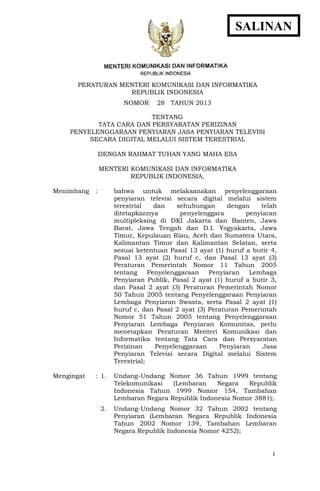 Peraturan Menteri Kominfo No 28 Tahun 2013 Tentang Tata Cara Dan Per