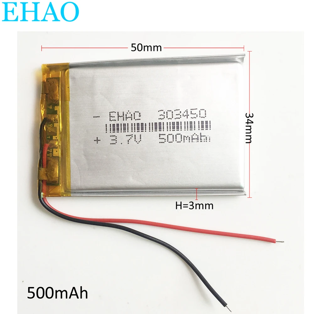 3 7v 500mah Lithium Polymer Lipo Rechargeable Battery Ehao 303450 For Mp3 Gps Vedio Game Bluetooth Headphone Rechargeable Batteries Aliexpress